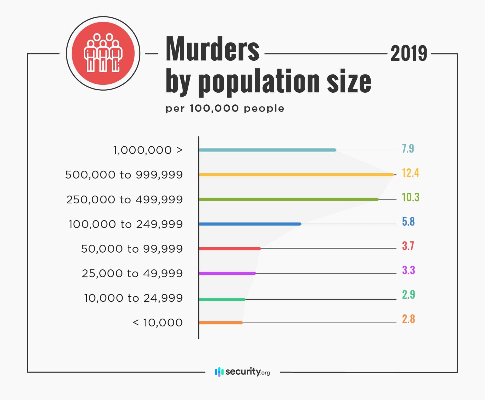 Murder is more common in cities with populations between 250,000 and 1 million. That being said, murder rates vary dramatically depending on the city and the metro area in question.